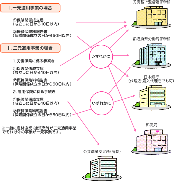 加入手続の方法 -保険関係成立届、概算保険料申告書の提出先等-