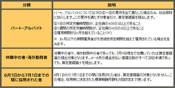算定基礎届の対象となる者は、毎年7月1日の在籍者です。ただし、次の場合は注意が必要です。